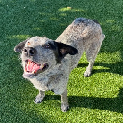 Get ready to party in the U.S.A. with Miley! Miley is a 1.5-year-old Blue Heeler mix who came our way from Tulare County Animal Services. Miley may be a country girl, but she’s a natural at operating in the city too! She’s already doing wonderfully on street walks alone or with other dogs and in our parks, all she wants is love!